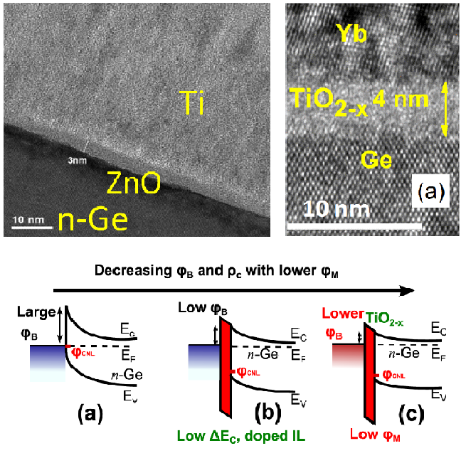 P. Paramahans et al.,“ZnO: an attractive option for n-type metal-interfacial layer-semiconductor (Si, Ge, SiC) contacts”, VLSI Symposium on Technology, Hawaii, June 12-15 (2012). “Fermi-level unpinning and low resistivity in contacts to n-type Ge with a thin ZnO interfacial layer”, Applied Physics Letters, 101, 182105 (2012). Link
