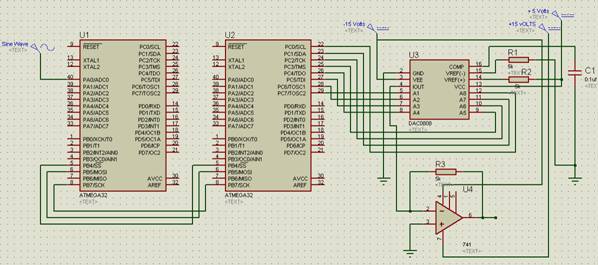 (Slave mode) using SPI communication. Reconstruct original signal from received samples using DAC0808.