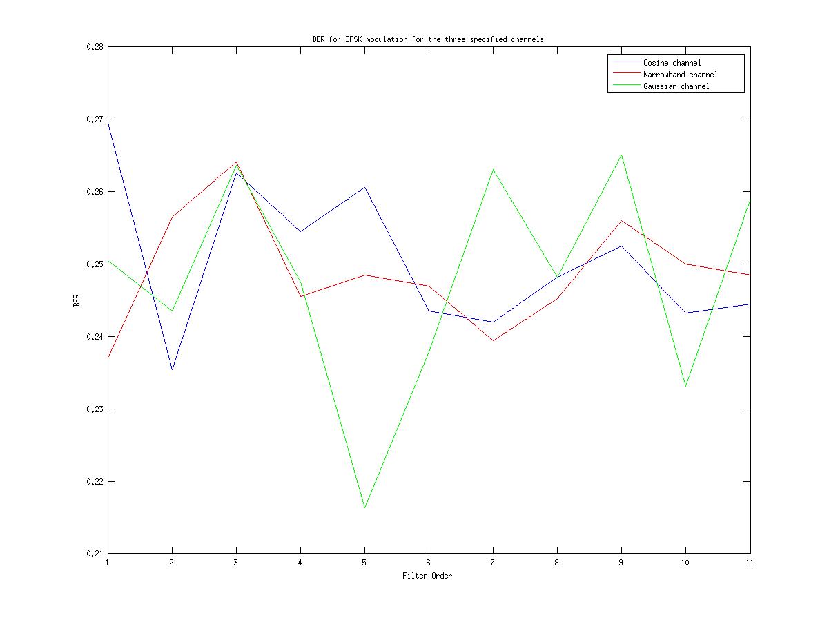 | Filter Order: 11 | BER (QPSK): 0.2626 | BER (BPSK):0.2656 |