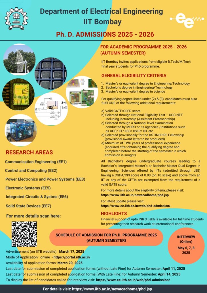 IIT Bombay was established in the year 1957 and the department of Electrical Engineering (EE) has been one of its major departments since its inception.