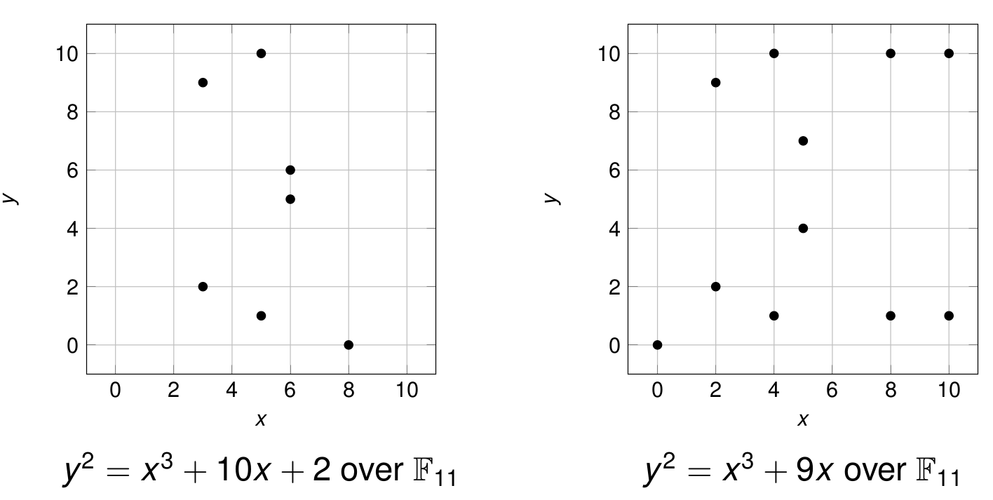 For p \ge 5, the set of solutions (x,y) in \mathbb{Z}_p^2 of \begin{equation*} y^2 = x^3 + ax + b \end{equation*} along with a “point at infinity” \mathcal{O} where 4a^3 + 27b^2 \neq 0